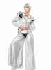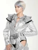 "Tulajdonképpen egy balayage technikáról van szó, amelyben a hajtövek sötétek. Ezeket a sötét tőrészeket halványlila és halványkék árnyalatokkal kombináltam, amelyek mélységet és különleges térélményt adtak a frizurának. A hajhoz egy futurisztikus, fémes hatású ruhát álmodtam meg, amelyet Hornyák István ruhatervező készített el. Rácz Dóra egy fényes sminket készített, amely által az összhatás egy Mesterséges Intelligencia által készített képet idéz, a frizurán azonban egyáltalán nem használtunk utómunkát, a fotókat Gráf Péter készítette. Ezekkel a szakemberekkel nagyon összeszokott csapat vagyunk, ha valamibe belekezdünk, abból mindig egy csodálatos végeredmény születik.