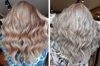 A jobb oldali haj egy platina szőke hajból készült. Mi fodrászok tudjuk, hogy a legjobb termékek használata mellett is a folyamatos szőkítés igénybe veszi a hajat. Így első számú feladatunk megtalálni és megtanítani vendégeink számára a megfelelő terméket, és azoknak helyes használatát. A K-time Glam Backstage Potion spray egy remek termék, melyet a vendég az otthoni hajápolásába is könnyedén beleépíthet. Ezek mellett pedig mi fodrászok is megkönnyíthetjük munkánkat a könnyebb kifésülést biztosító és jól hidratáló spray-vel. Könnyed használat, jó hidratálás, és ragyogást kölcsönző végeredmény.