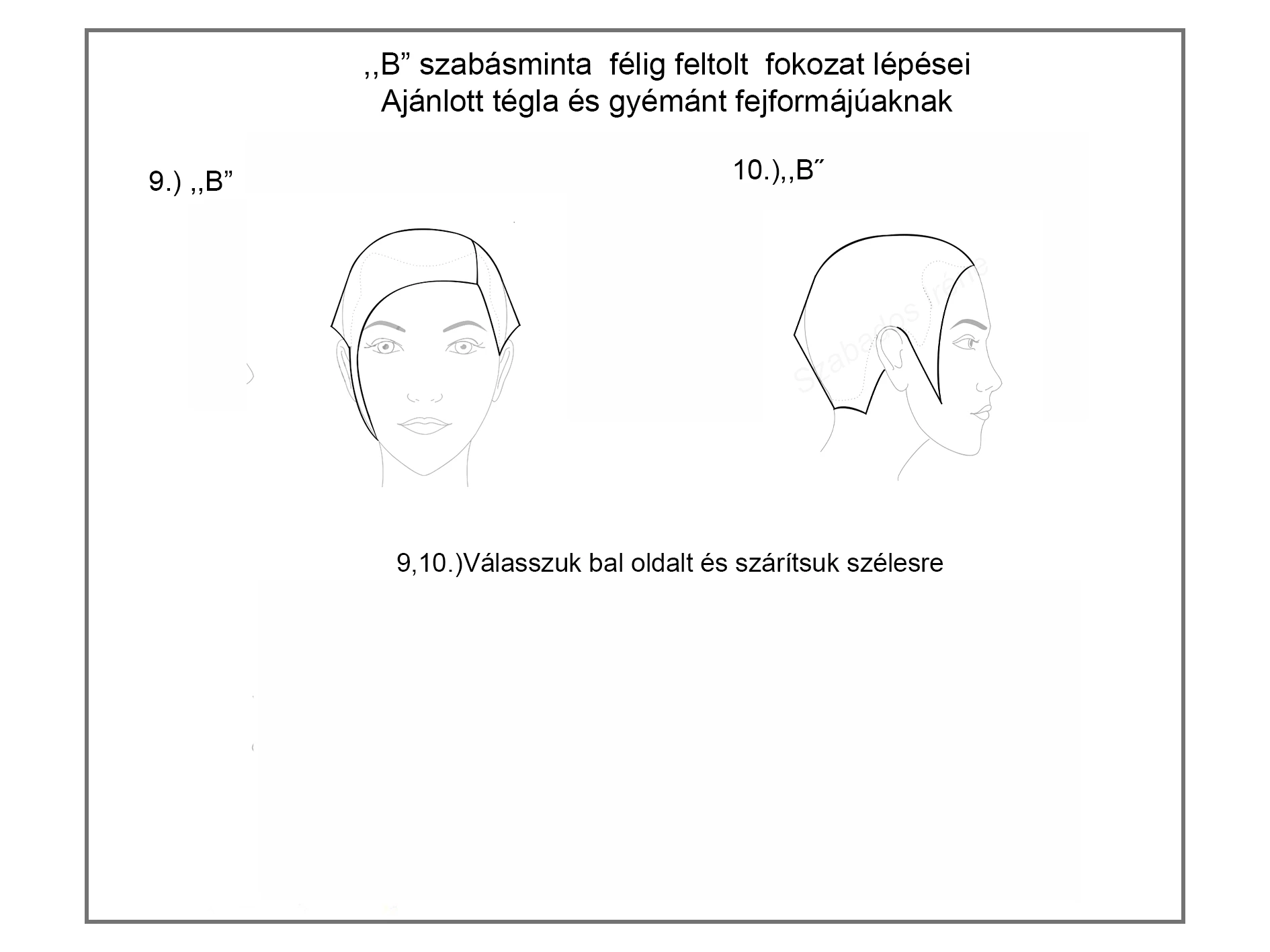 A szabásminta az ,,ABC” vágótechnikákból áll. A vágótechnika pedig fogásokból. Mutatjuk az "B" szabásmintát: