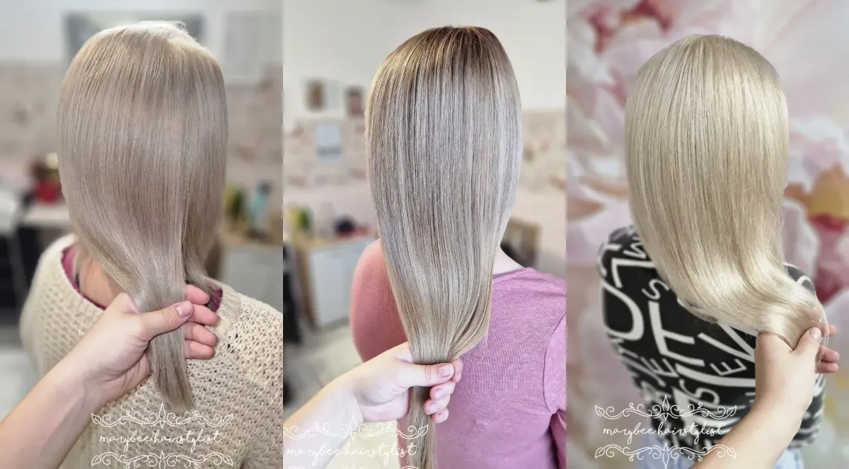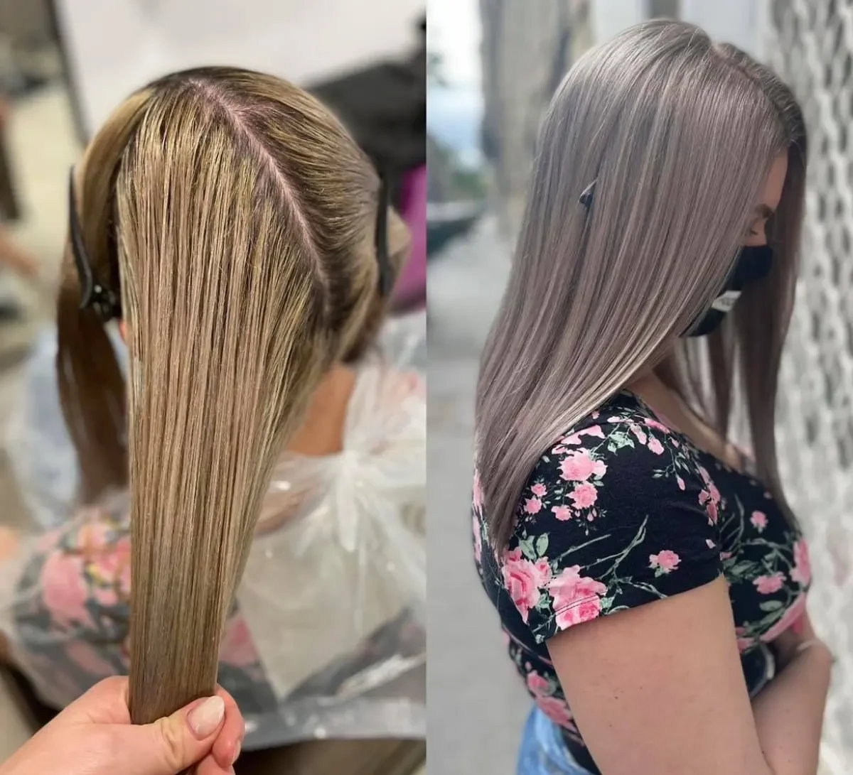 “A vendégem lenövéssel érkezett. Leszőkítettem a haját, majd 010G színezőt használtam. Itt a kellemes hamvasság elmaradt, de ennek ellenére egy nagyon szép világos árnyalatott kaptam. Ezután feltettem a hajára a 010P színezőt, aminek köszönhetően a végeredmény egy gyönyörű hamvas szőke lett.”