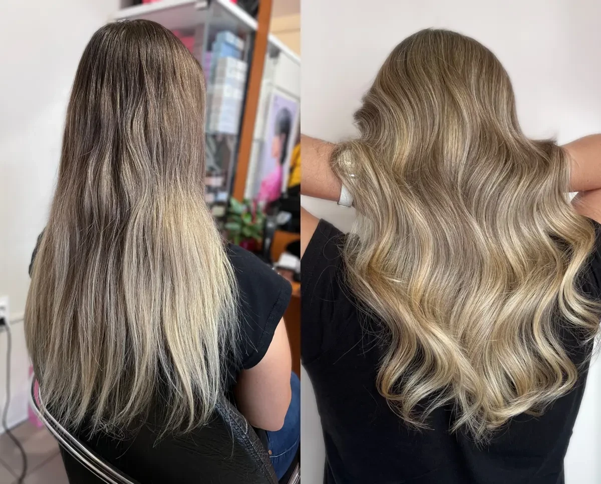 “Egy másik vendégemnek a közel 1 évvel ezelőtt AirTouch-technikával készített festését kellett frissíteni. Az ő hajára a szőkítés után a 010WG-t használtam. Ebben az esetben már bátrabb voltam, tudtam, hogy mire számítsak az állag és anyagfelhordást tekintve. Ez eddig a kedvenc színem amit eddig használtam! Nagyon sok árnyalót kevertem már, de sosem sikerült ezt az árnyalatot elérnem.”