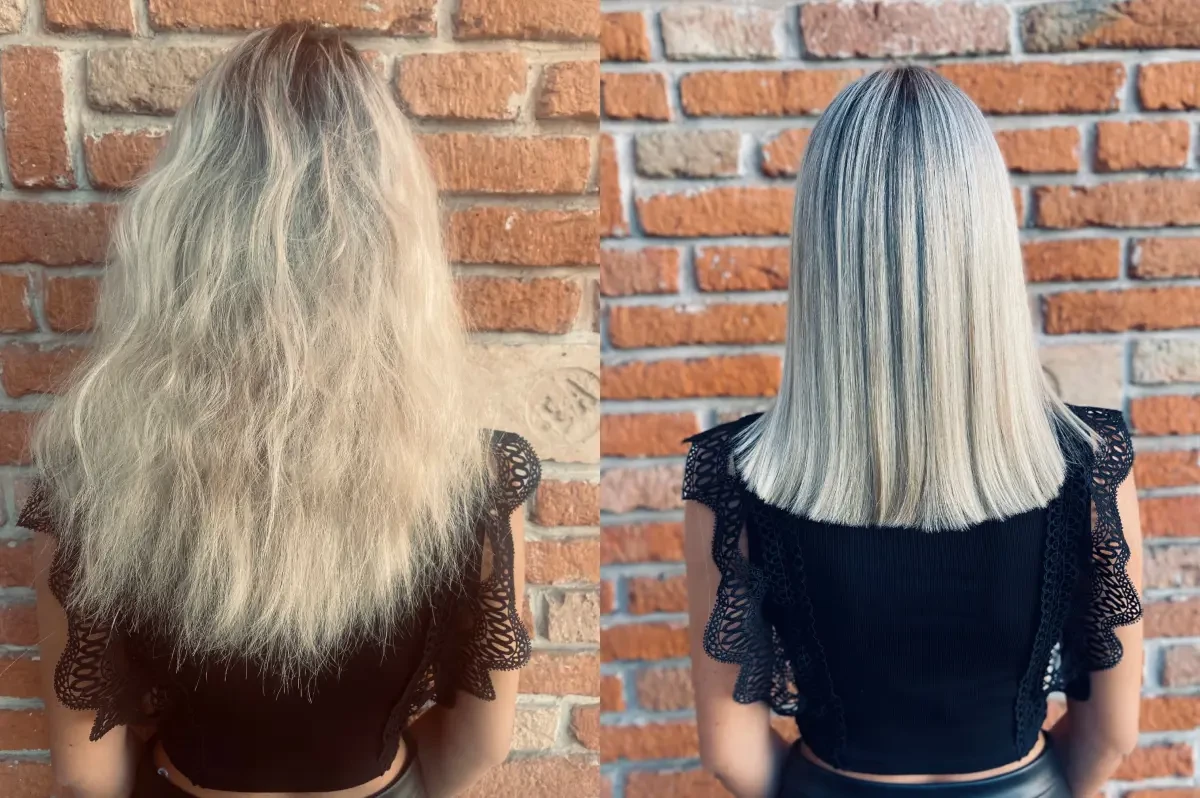 Könnyen fel tudtam vinni a hajra, szépen eloszlott a hajszálakon. A haj minőségén – szőkítés után – sokat javított, lágyabb, csillogóbb, puhább lett a haj. Külön öröm volt, hogy a szőkítés nyomai nem látszódtak a hajszálakon. A vendégem is nagyon meg volt elégedve az eredménnyel és a haja minőségével.”
